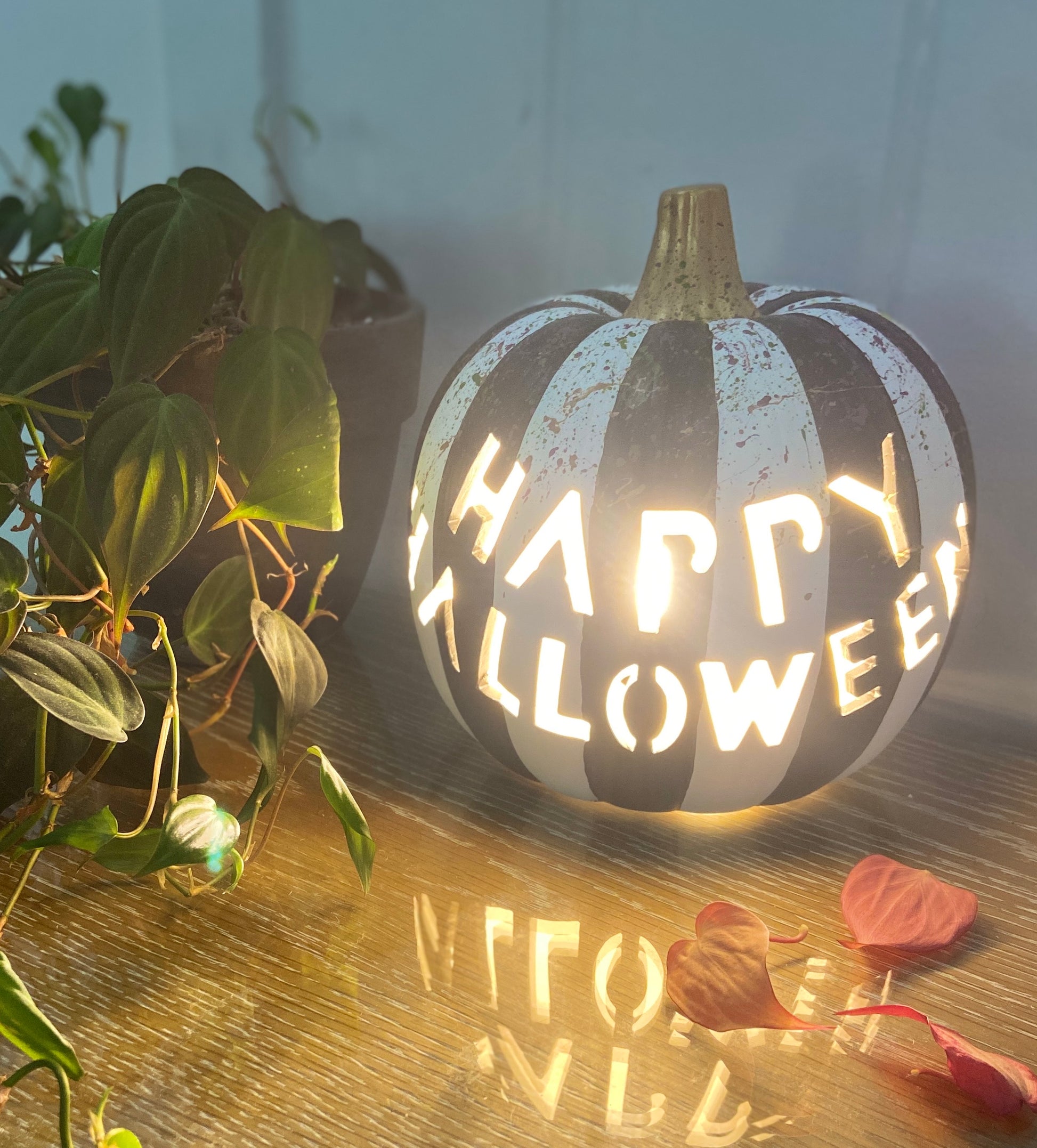 -Light up Halloween Pumpkin (warm white lights)- 7 ⅛" Dia x 6 ¾" H